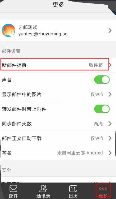 安卓版阿里郵箱APP郵件提醒設(shè)置